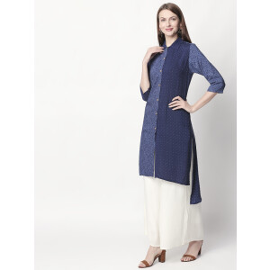This Velvet Colour Printed Rayon Kurti is unique in every way. Starting from the rare symmetric patterns to the brief slit in the bottom end, the Kurti is super stylish and classy. This piece is sure to become the next favourite in your wardrobe. The Velvet on the white base gives the garment a suave appearance, which revamps your everyday-look.