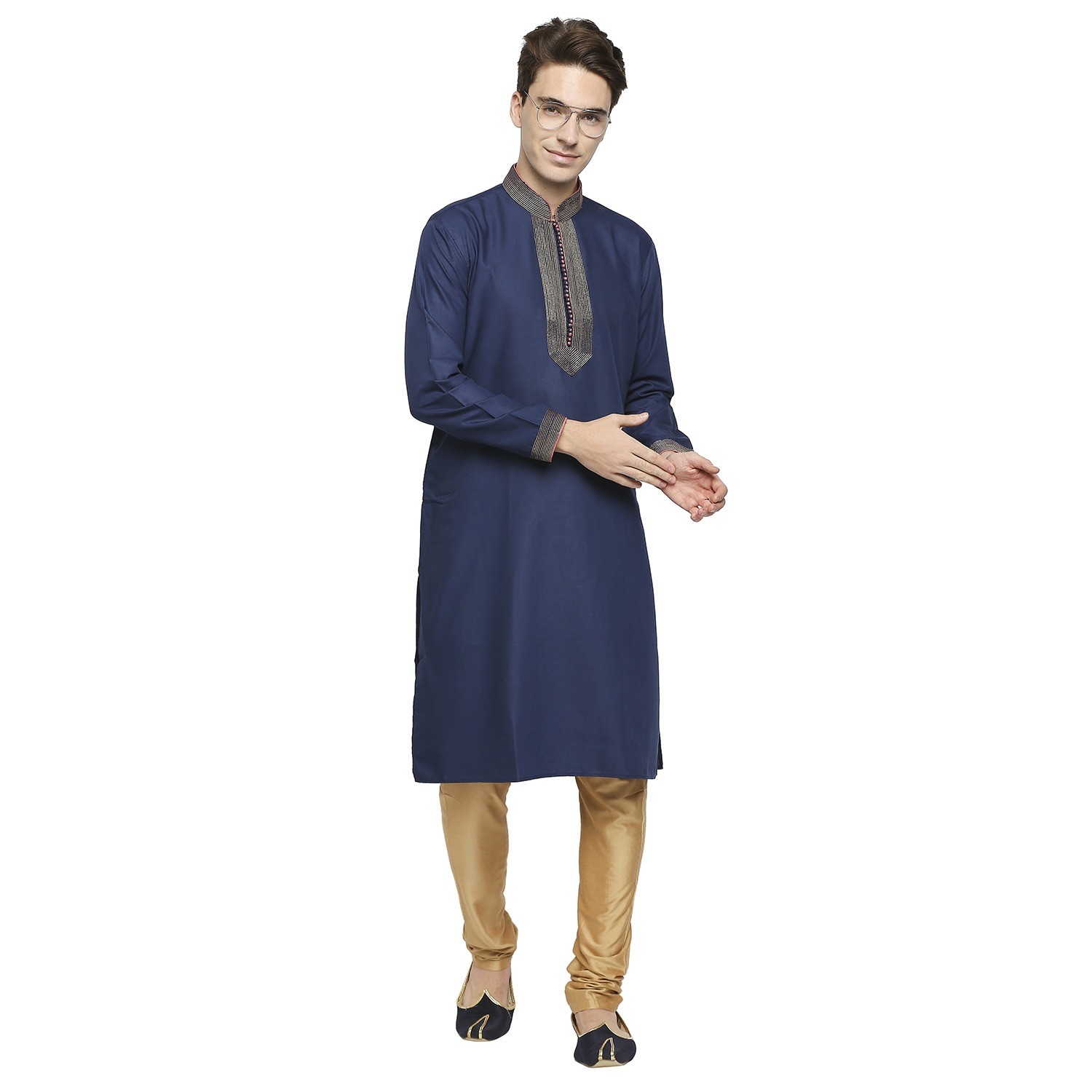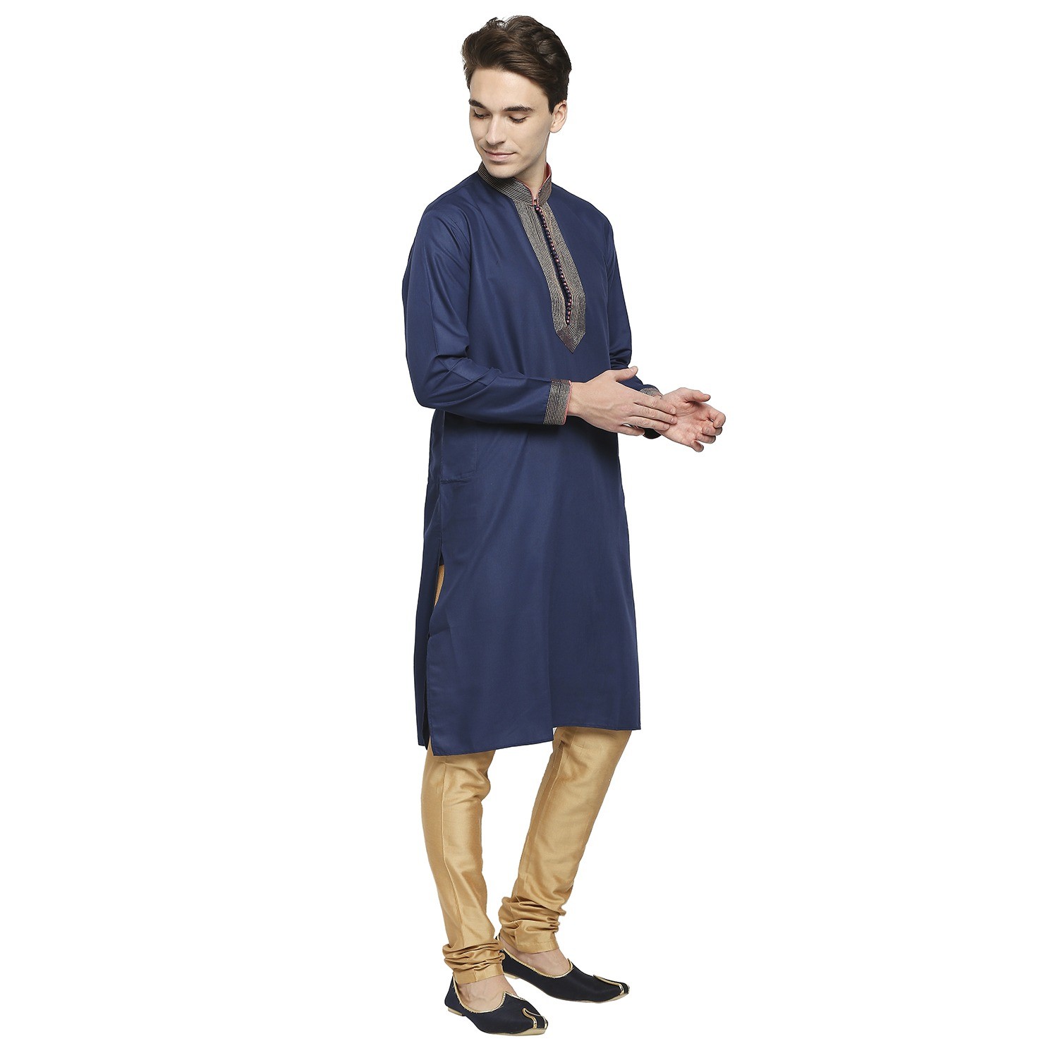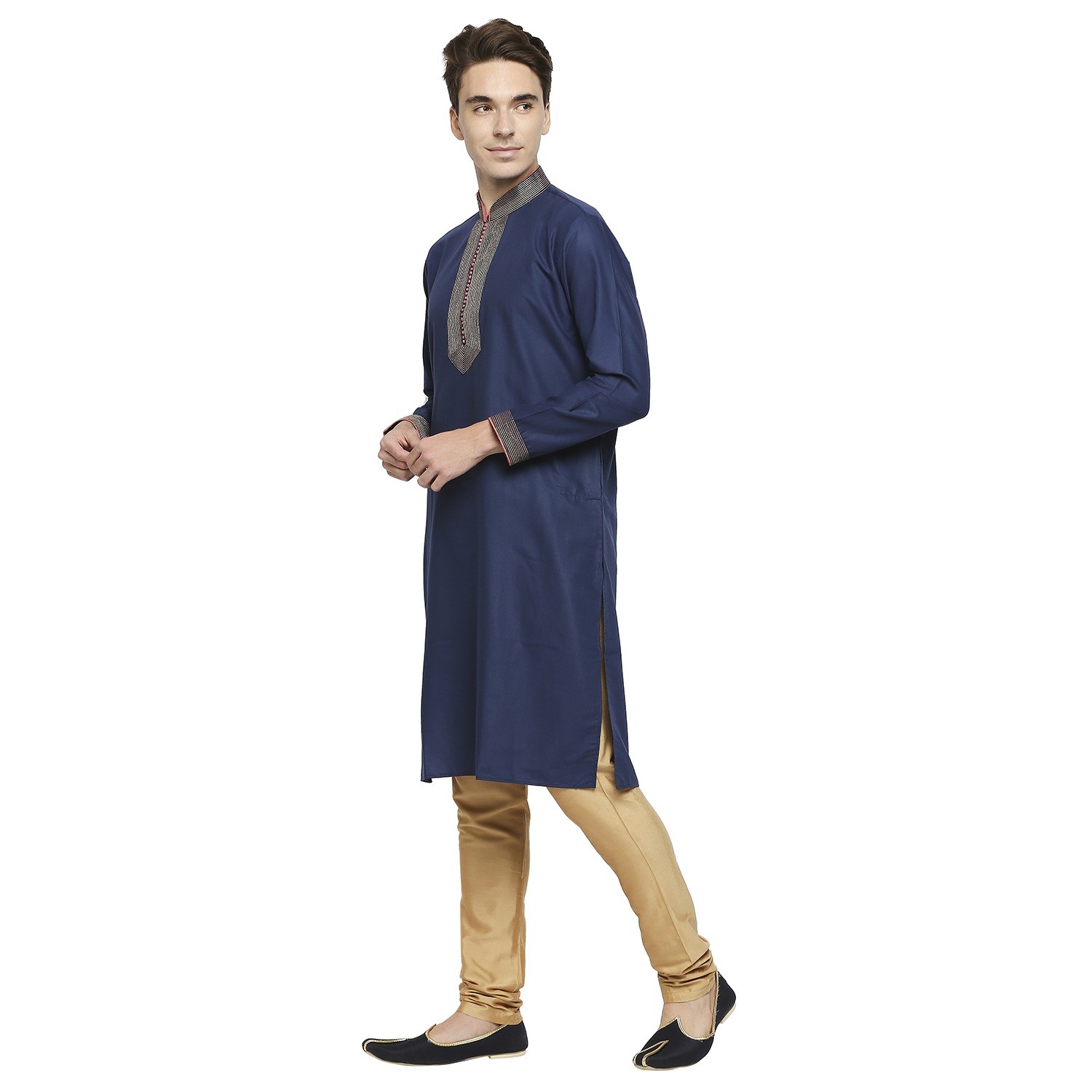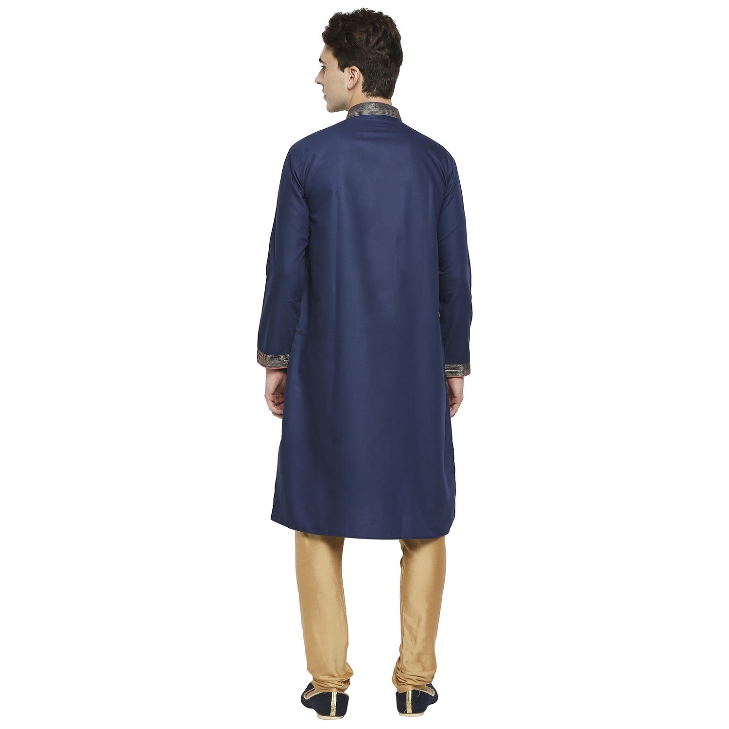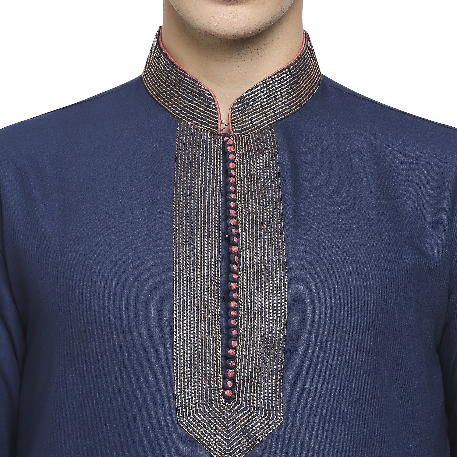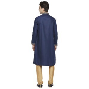 Be the first to review “Ink Blue Formal Cotton Kurta With Gold Dori Embroidery And Peach Contrast Detail At Collar”