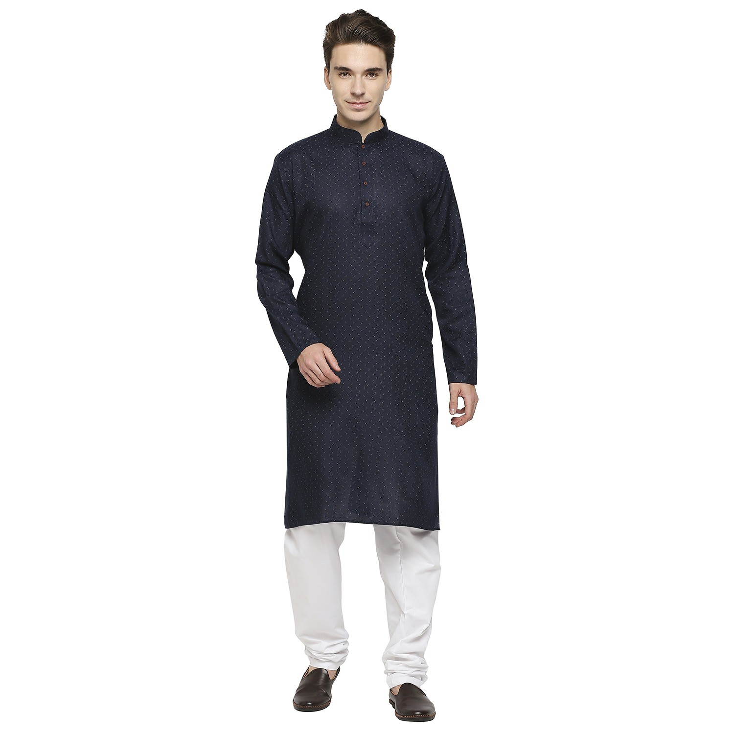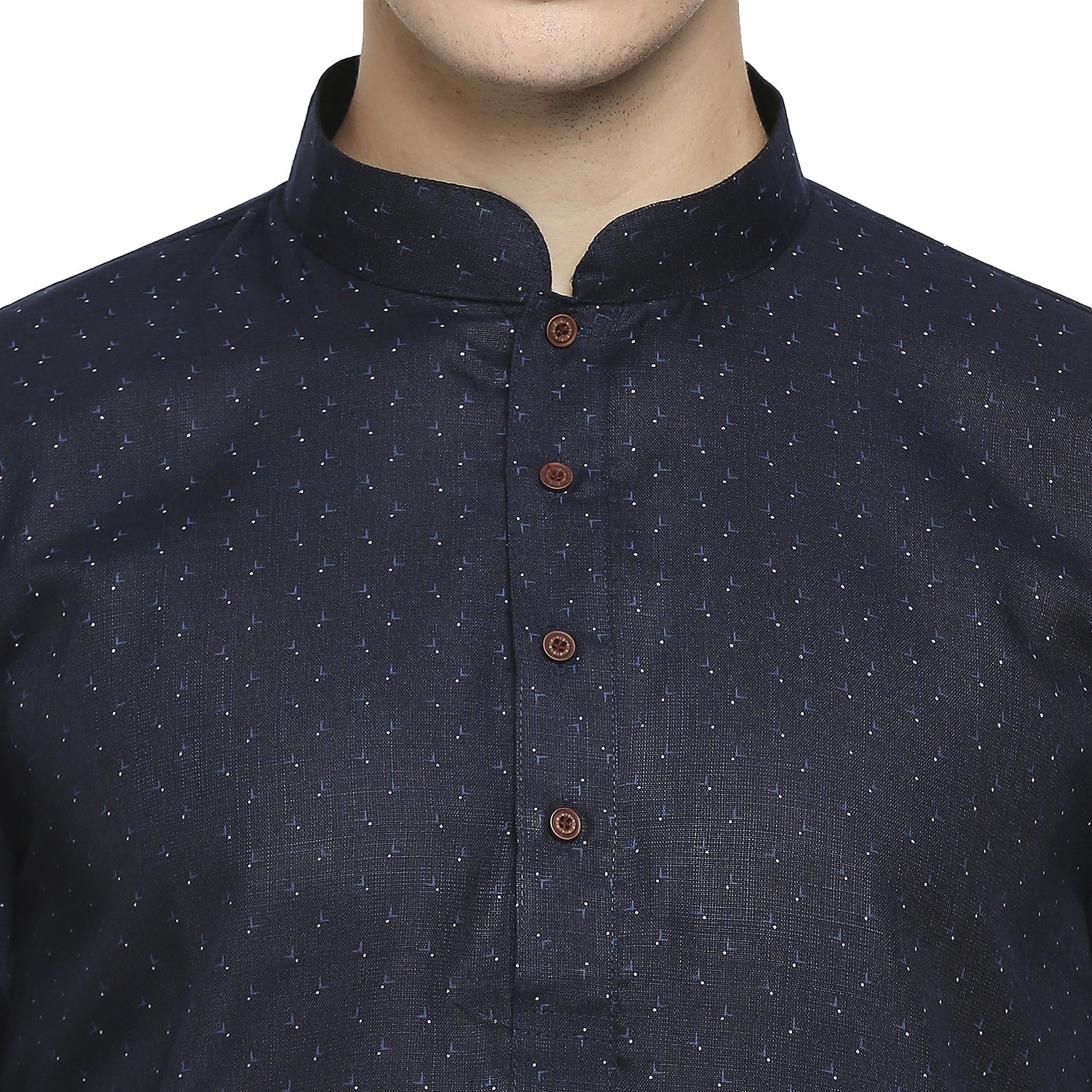 Be the first to review “Ink Blue Spun Cotton Kurta With An All Over Print And Wood Buttons”