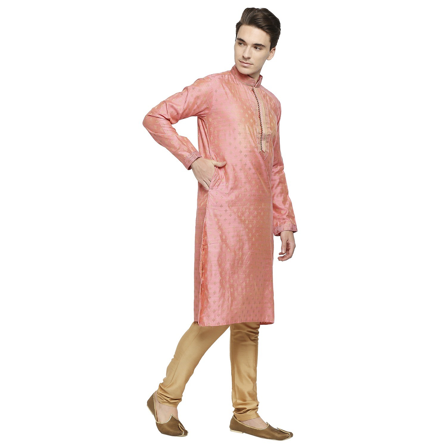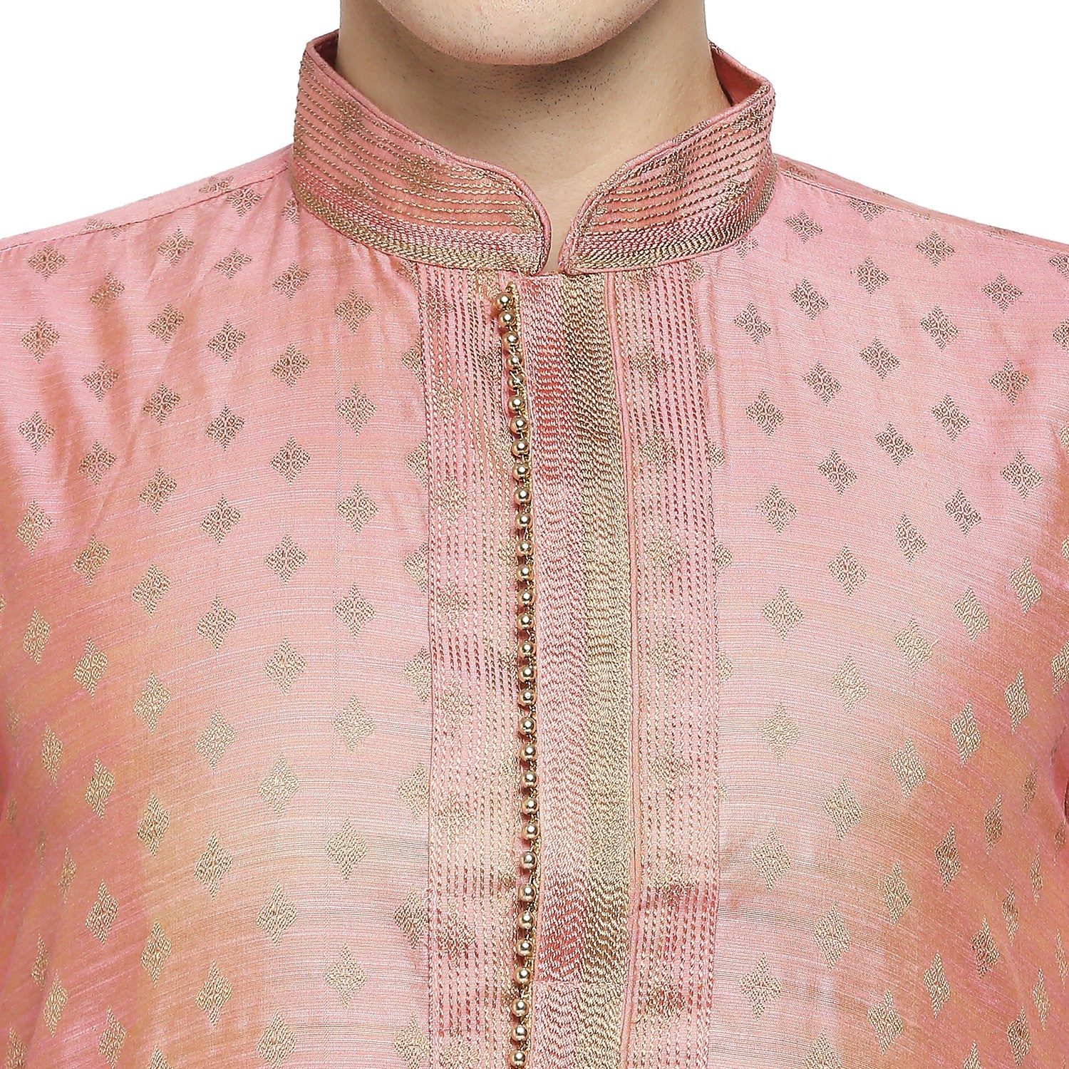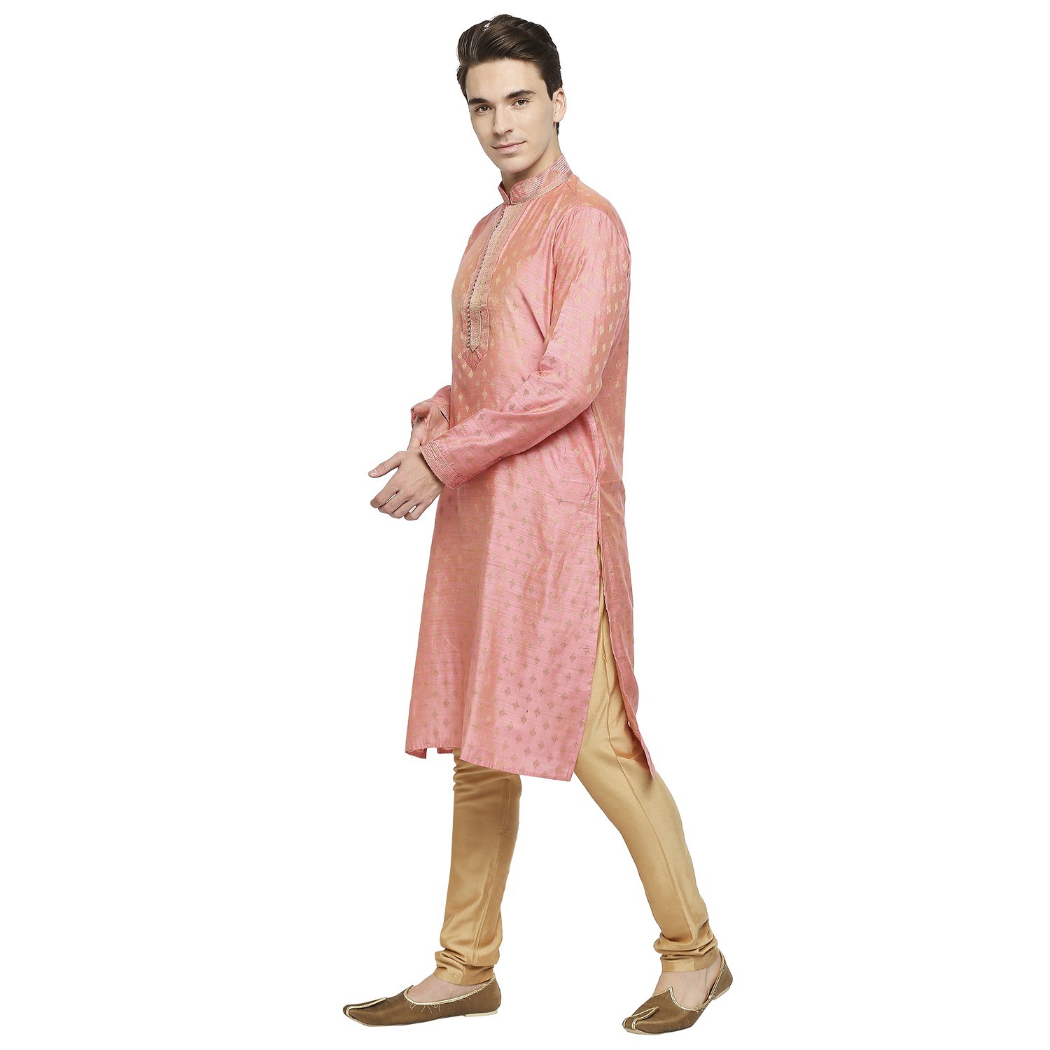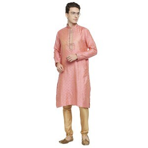 Be the first to review “Rich Peach Silk Brocade Kurta With Gold Dori And Button Detailing”