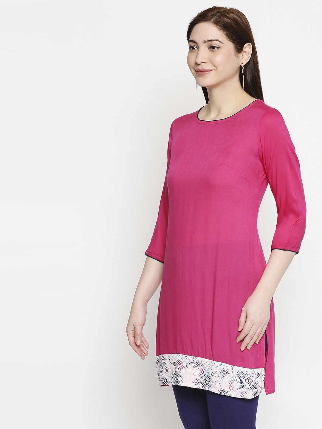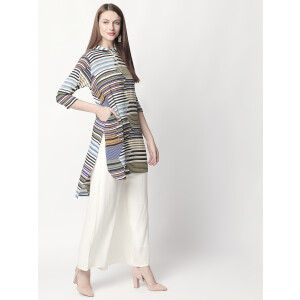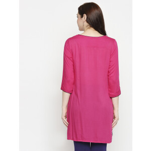This Kurti is great on comfort and high on and is bound to catch your fancy with its contemporary and functionality. The clean construction and soft but bright colors catch attraction and make you feel stylish yet comfortable.