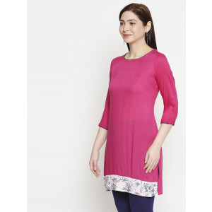 RIYAZ GANGJI LIBAS Women’s Cotton Blend Printed Regular Kurti (Pink)