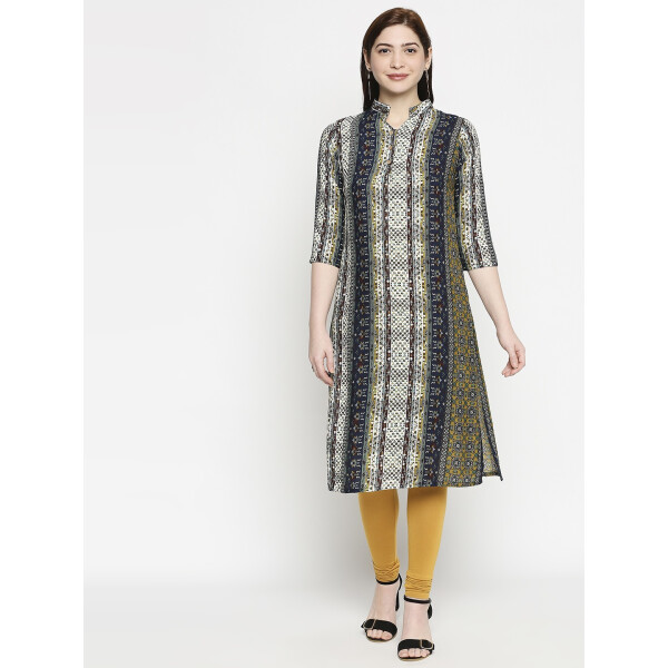 This Kurti is great on comfort and high on and is bound to catch your fancy with its contemporary and functionality. The clean construction and soft but bright colors catch attraction and make you feel stylish yet comfortable.